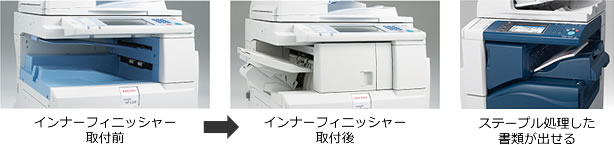 インナーフィニッシャーはあまり印刷しない企業向けのもので、数枚綴りの資料をステープルでまとめるなど、簡単な資料をまとめる時によく使われる。