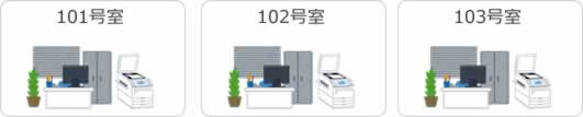 コピー複合機を各部屋に一台ずつ設置する運用方法。