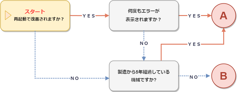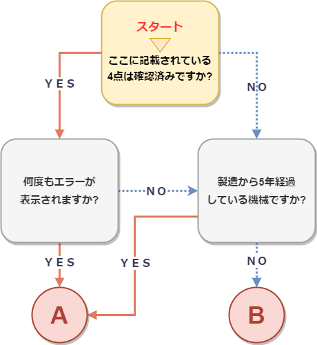 コピー機のエラーコードが表示された場合のYes/Noチャート