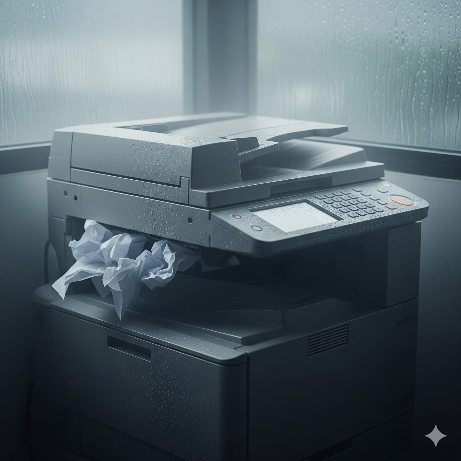 結露とは、コピー複合機内部に寒暖の差が激しい冬季によく見られる現象で、部屋が極端に寒いときに暖房を入れたりすると外気とコピー複合機内部の温度差が生まれ結露が発生してしまう。
