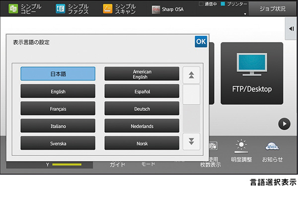 グローバルオフィスに最適!操作パネルは24言語に対応!
