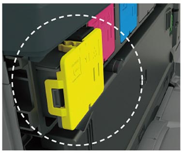 従来品は、トナーが無くなると複合機本体の液晶操作パネル上になくなったカラーが表示され、お客様で引き抜いていただく必要がありました。このMX-2630FNは、トナーカートリッジの中身が無くなると、自動で押し出される機能を搭載!使い終わったトナーが明確にわかり、交換作業も簡単に行えます。交換しやすさの工夫で作業時間の短縮になること間違いなし!