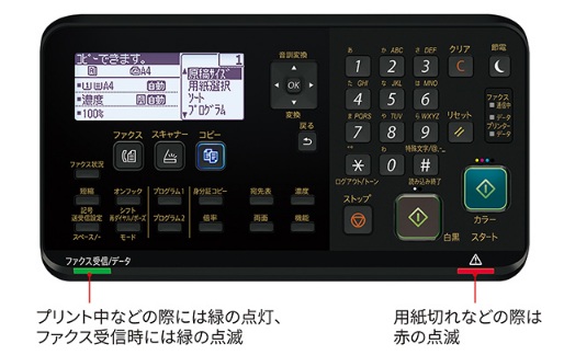 さらに、プリント出力中や用紙切れをLEDの点灯や点滅でお知らせしてくれるので、離れた場所にいても確認できます。