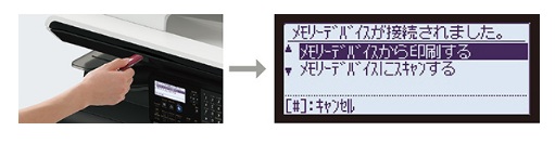 USBメモリーを挿入すると印刷・スキャンの選択画面がポップアップ。メモリーデバイスから印刷する、またはスキャンするが一目でわかり、操作も簡単です。