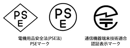 ※通信機器端末技術適合マーク(下記参照)にあるFAX付コピー機(複合機)はPSEマークの付いていない機器でも販売ができます。